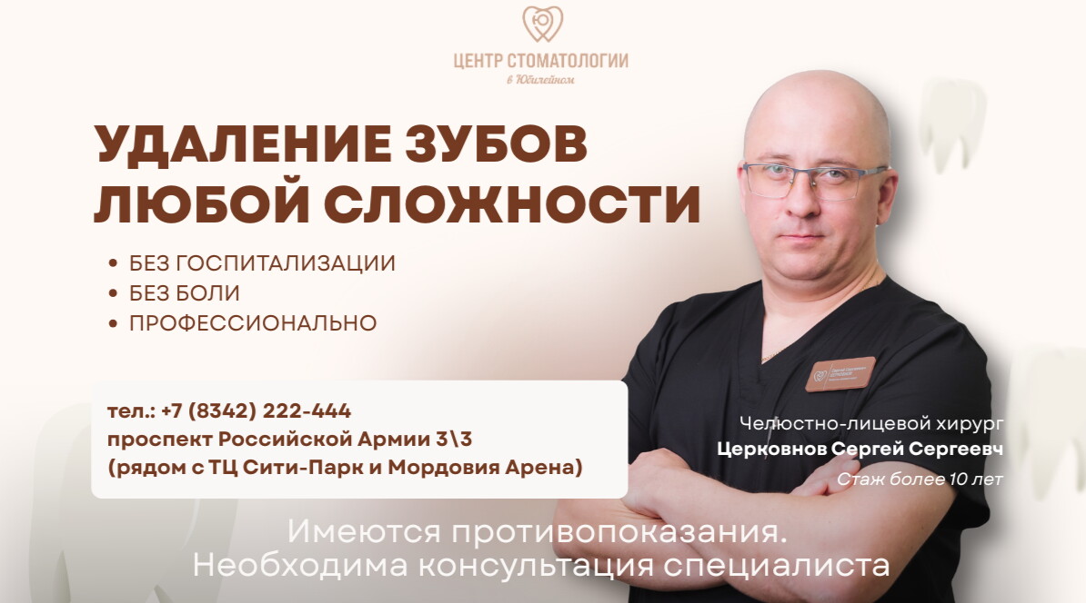 Посетил консультацию у лицевого хирурга Сергея Сергеевича Церковного, мне понравилось, как он проявил себя по отношению ко мне, он очень добрый, внимательный и много знает. У меня серьезная операция, которую не могли сделать в Саранске, и я планирую продолжить лечение здесь. Жена тоже делала операцию у этого доктора, очень хороший специалист.